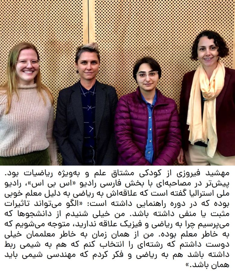 Fifty Leading Women Scientists of Asia, where she was one of only two representatives from Australia. In interviews, she has often acknowledged her admiration for the late Maryam Mirzakhani, the Iranian mathematician and Fields Medalist, calling her a guiding light who proved that brilliance and humility transcend gender and nationality.